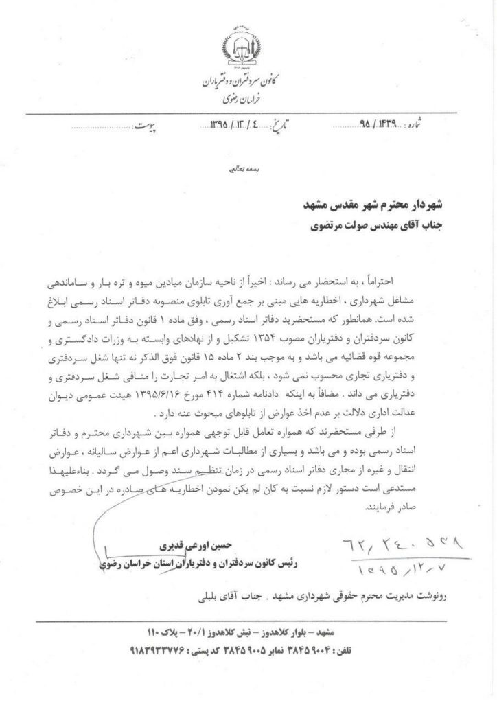 کانون سردفتران و دفتریاران خراسان رضوی - کانون سردفتران و دفتریاران خراسان رضوی