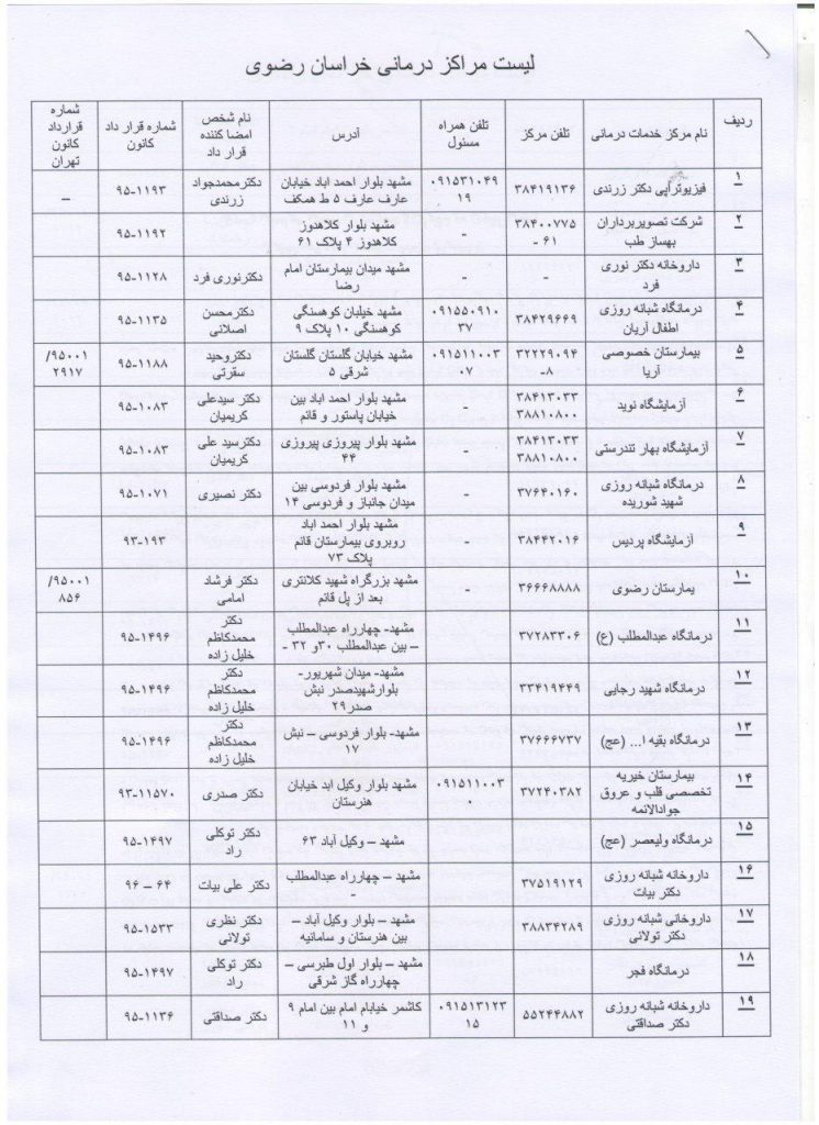 لیست مراکز درمانی طرف قرارداد کانون سردفتران و دفتریاران خراسان رضوی اخبار سایت بوسیله مدیر در خرداد ۶, ۱۳۹۶ 0 ضمنا به استحضار همکاران محترم میرساند که قرارداد داروخانه دکتر بابازاده در بلوار امامت به صورت یکجانبه از طرف نامبرده فسخ گردیده است روابط عمومی کانون سردفتران و دفتریاران خراسان رضوی