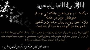 پیام تسلیت کانون سردفتران و دفتریاران خراسان رضوی برای درگذشت هموطنان عزیز در حادثه زلزله غرب کشور اخبار سایت بوسیله مدیر در آبان ۲۲, ۱۳۹۶ 0