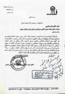 نظر همکاران محترم را به مرقومه ی معاونت محترم امور حقوقی و موقوفات آستان قدس رضوی جلب می نماییم اخبار سایت بوسیله مدیر در آذر ۱۶, ۱۳۹۶ 0