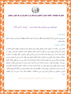 سی و هشتمین جلسه هیت مدیره کانون سردفتران و دفتریاران خراسان رضوی اخبار سایتاخبار هیئت مدیره بوسیله مدیر در اسفند ۲, ۱۳۹۶ 0