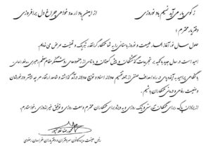 پیام نوروزی ریاست کانون سردفتران و دفتریاران استان خراسان رضوی به سردفتران و دفتریاران دفاتر اسناد رسمی اخبار سایت بوسیله مدیر در فروردین ۱, ۱۳۹۷ 0