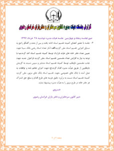 پنجاه و چهارمین جلسه هیت مدیره کانون سردفتران و دفتریاران خراسان رضوی اخبار سایتاخبار هیئت مدیره بوسیله مدیر در تیر ۱۰, ۱۳۹۷ 0