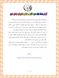 پنجاه و هشتمین جلسه هیت مدیره کانون سردفتران و دفتریاران خراسان رضوی اخبار سایتاخبار هیئت مدیره بوسیله مدیر در مرداد ۱۷, ۱۳۹۷ 0