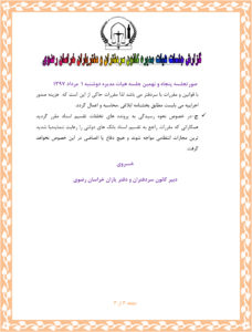 پنجاه و نهمین جلسه هیت مدیره کانون سردفتران و دفتریاران خراسان رضوی اخبار سایتاخبار هیئت مدیره بوسیله مدیر در مرداد ۱۷, ۱۳۹۷ 0