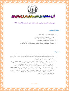 شصت و یکیمن جلسه هیت مدیره کانون سردفتران و دفتریاران خراسان رضوی اخبار سایتاخبار هیئت مدیره بوسیله مدیر به روز رسانی شده در مهر ۱۴, ۱۳۹۷ 0