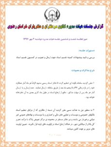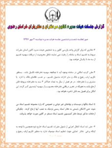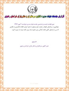 شصت و ششمین جلسه هیت مدیره کانون سردفتران و دفتریاران خراسان رضوی اخبار هیئت مدیره بوسیله مدیر در آذر ۲۳, ۱۳۹۷ 0