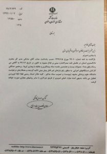 نامه استانداری خراسان رضوی در خصوص تعطیلی دفاتر اسناد رسمی استان خراسان رضوی تا 15 فروردین 1399