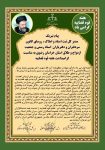 پیام تبریک مدیر کل محترم ثبت اسناد و املاک، روسای کانون سردفتران و دفتریاران و جمعیت ازدواج و طلاق خراسان رضوی به مناسبت گرامیداشت هفته قوه قضائیه.