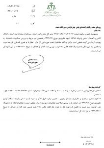 تصویر نامه معاون محترم امور اسناد اداره کل ثبت خراسان رضوی جهت استحضار پذیرفه شدگان آزمون دفتریاری مورخ ۷ شهریور ۱۳۹۹