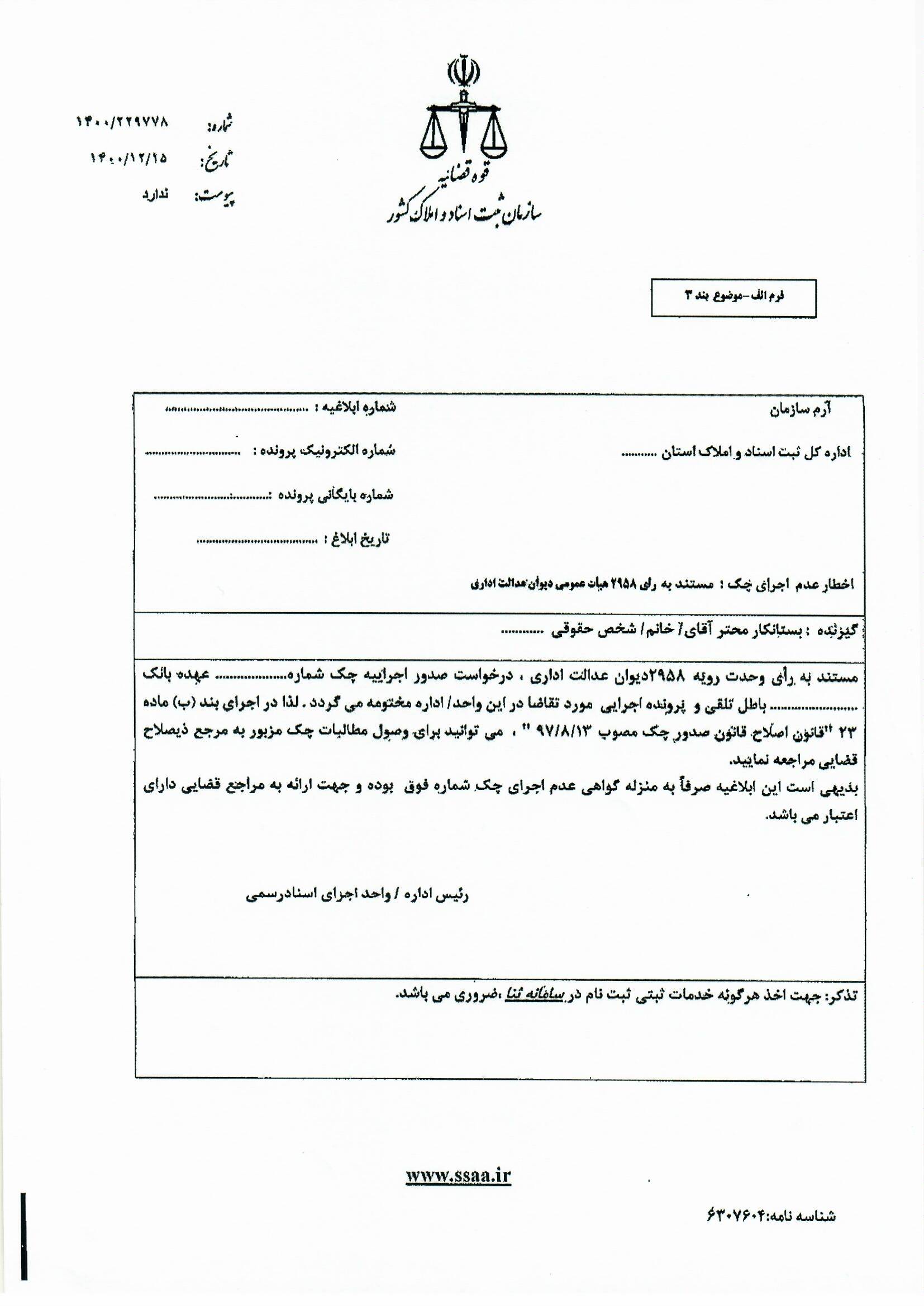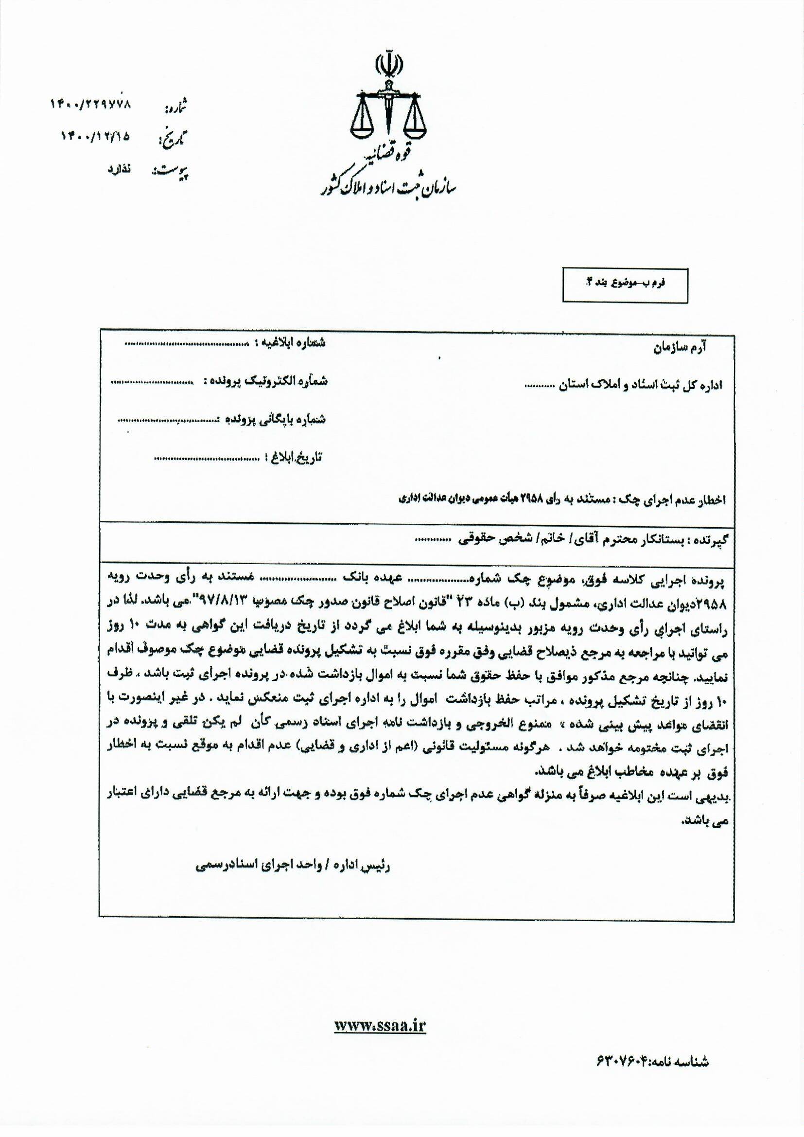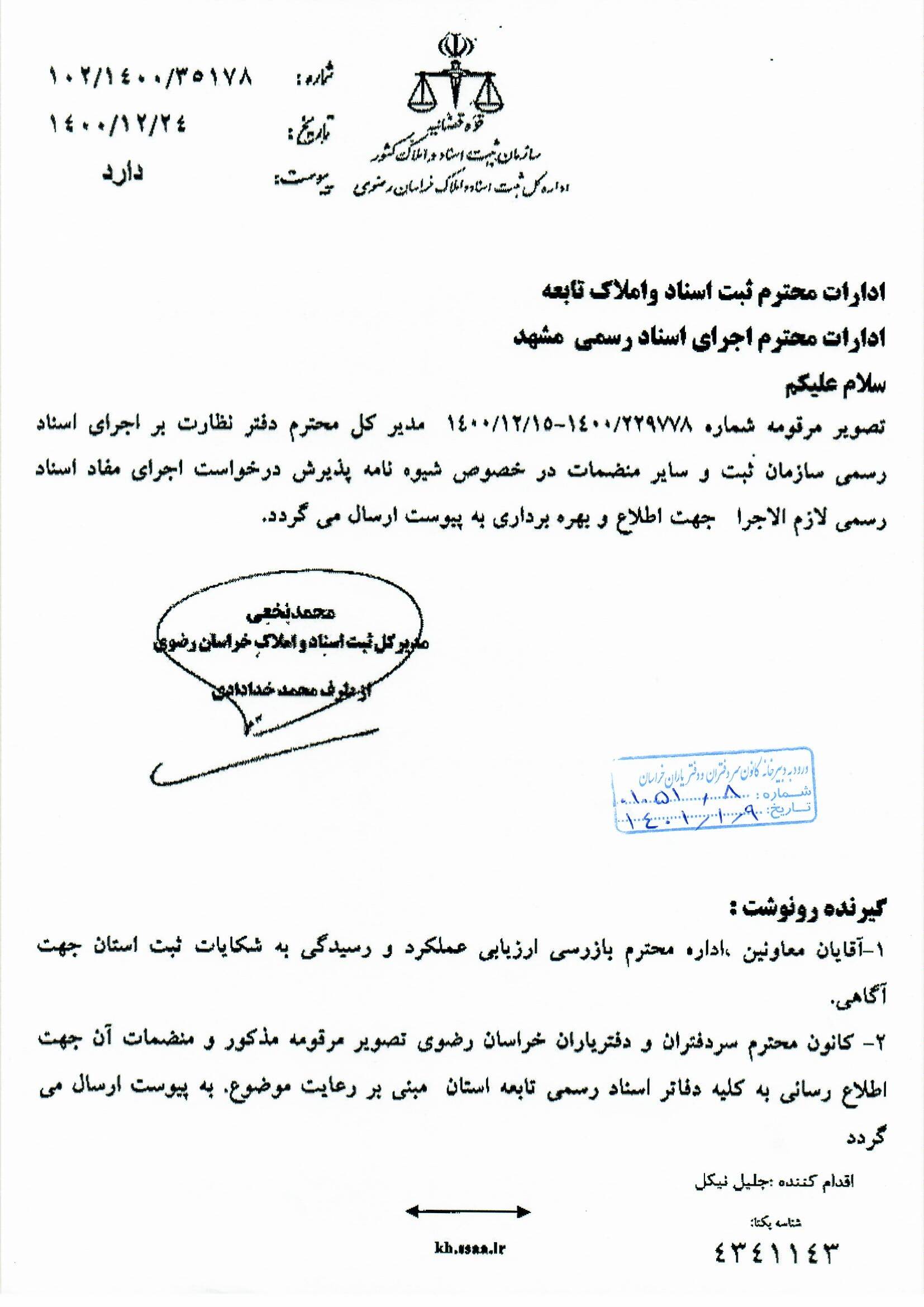 شیوه نامه پذیرش درخواست اجرای مفاد اسناد رسمی لازم الاجرا اخبار سایت بوسیله به روز رسانی شده در فروردین ۳۱, ۱۴۰۱ 0 🔸شیوه نامه پذیرش درخواست اجرای مفاد اسناد رسمی لازم الاجرا🔸 1 2 3 4 *برای دانلود می توانید روی فایل کلیک کنید دانلود فایل تلگرام اینستاگرام