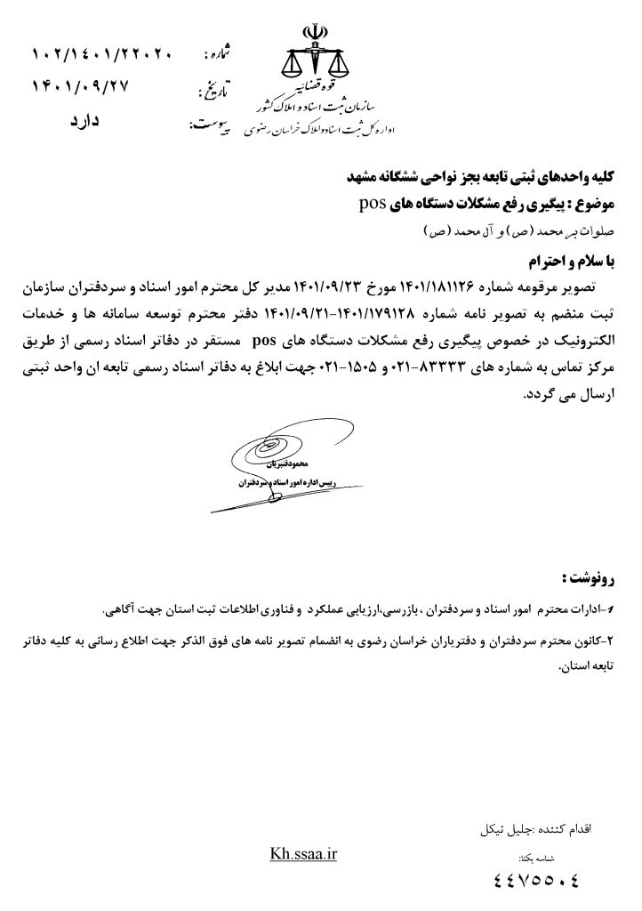 سردفتران محترم دفاتر اسناد رسمی استان خراسان رضوی
