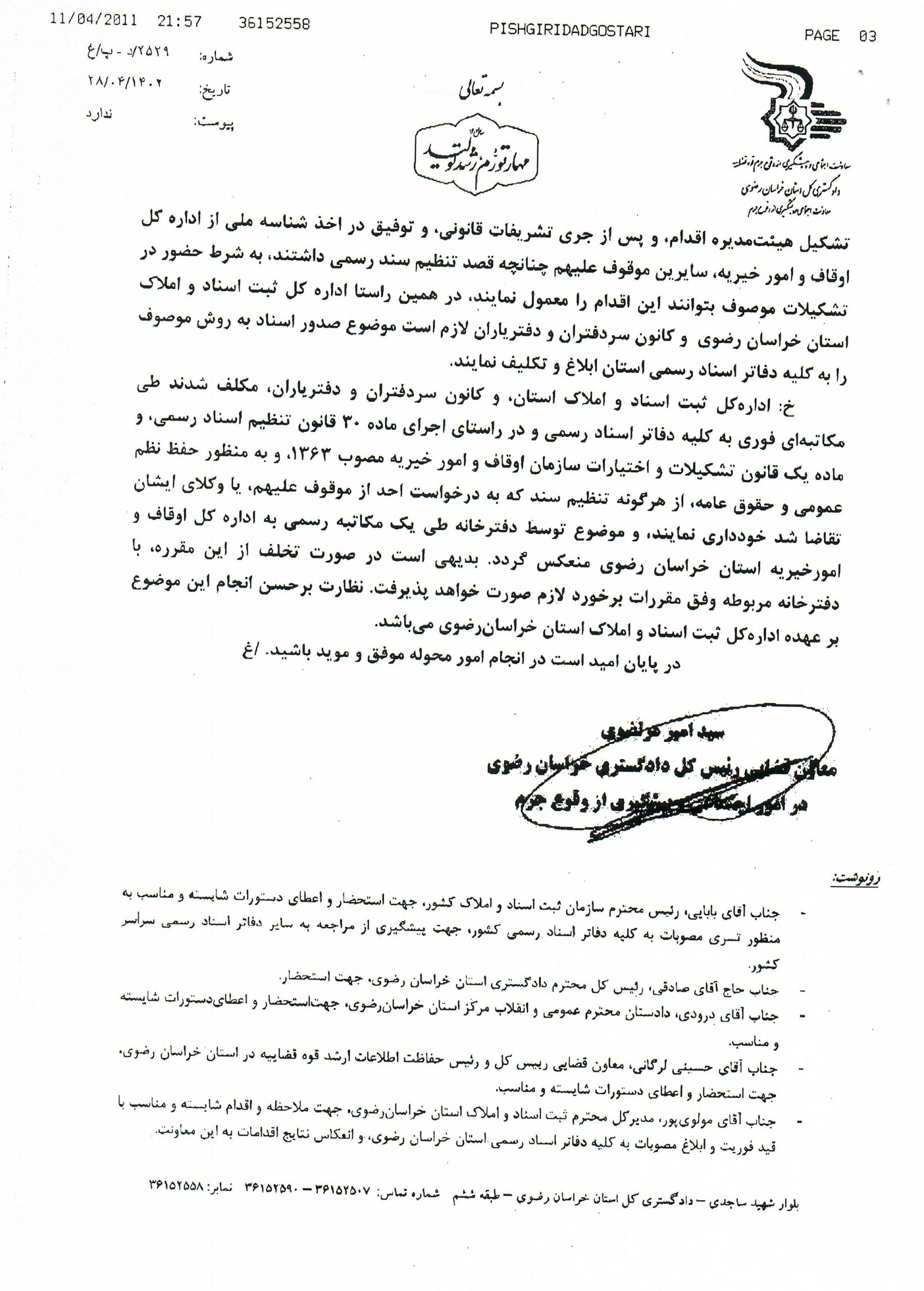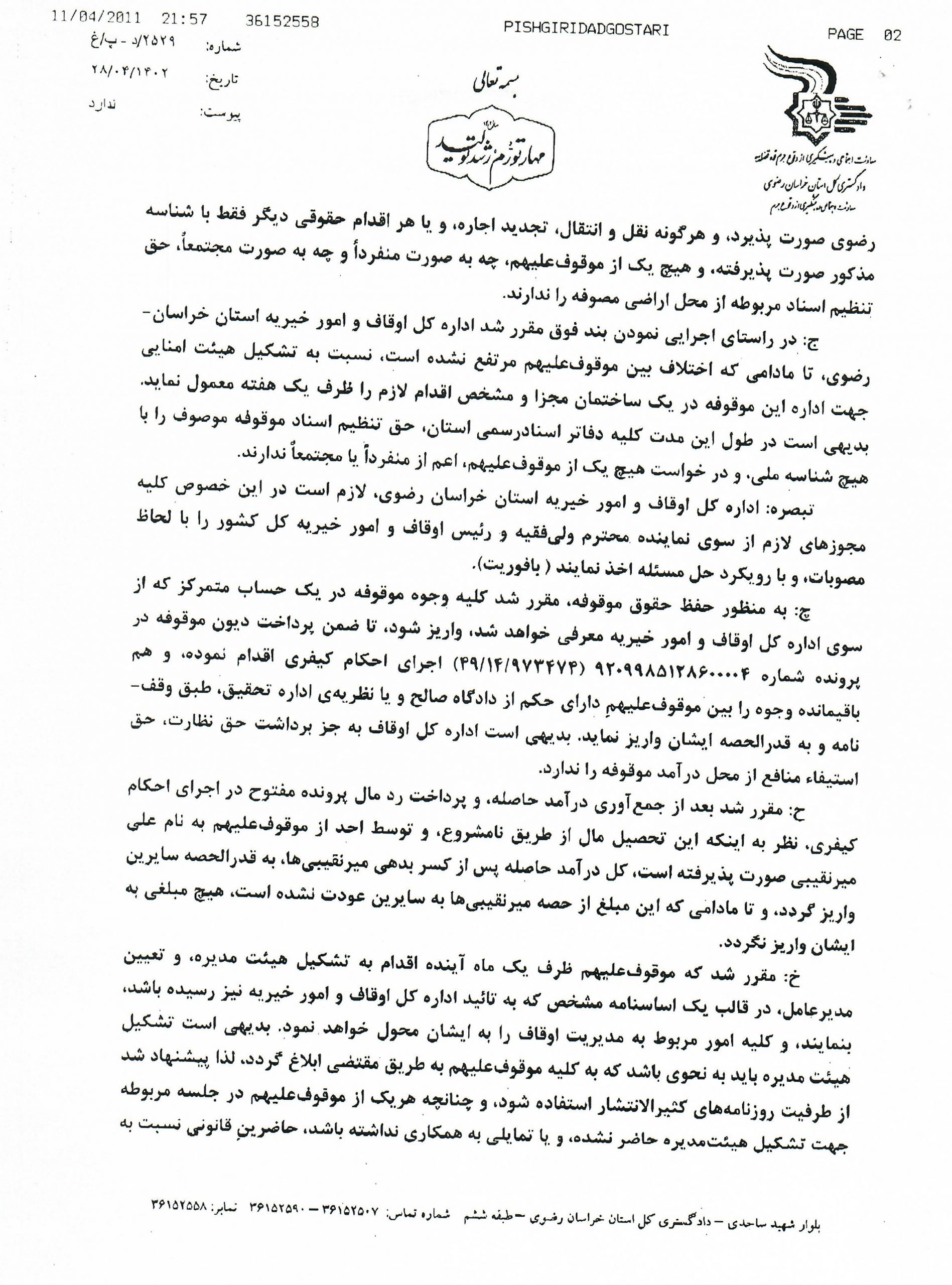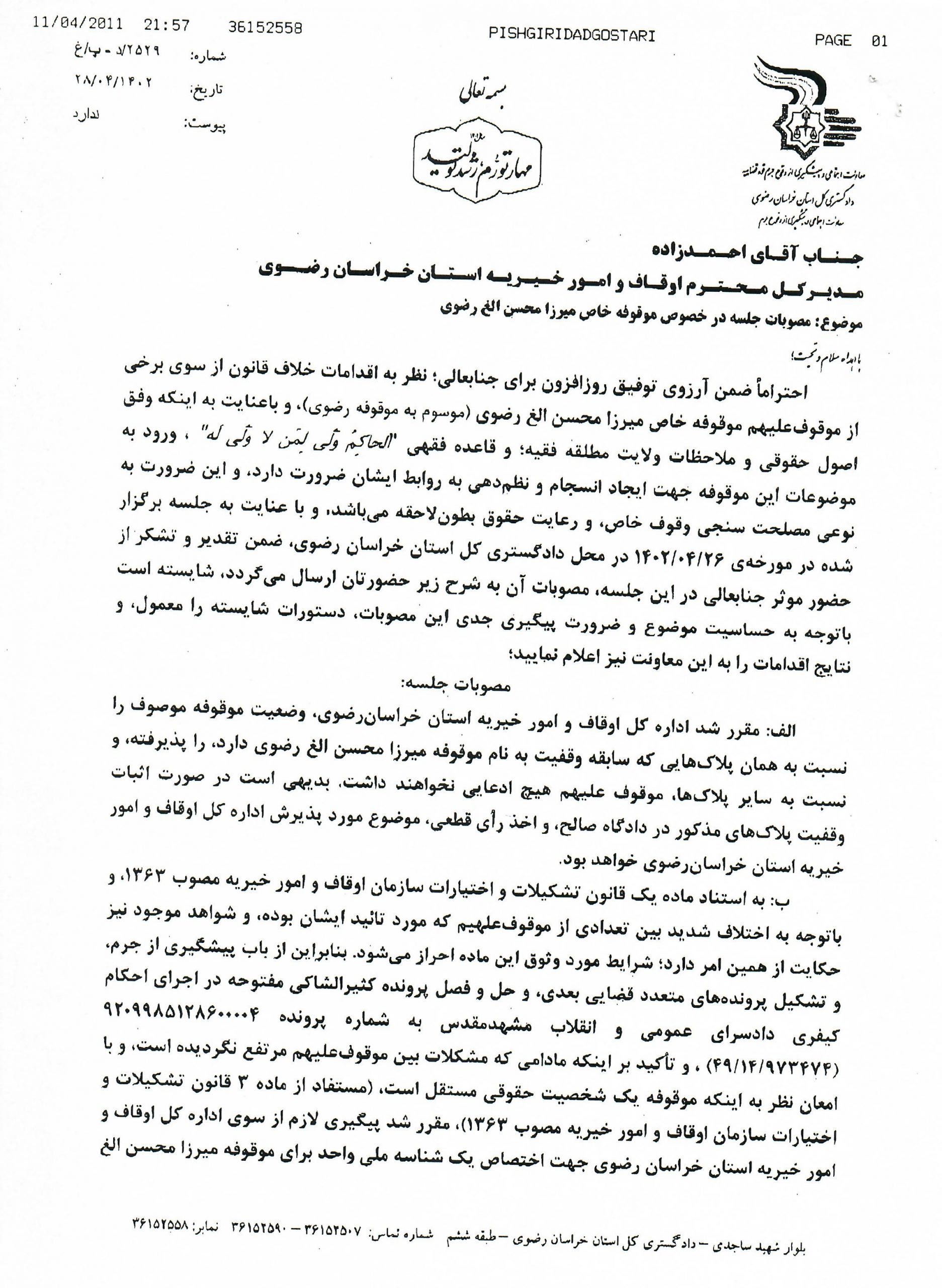 مصوبه دادگستری استان خراسان رضوی در خصوص موقوفه خاص میرزا محسن الغ رضوی اخبار سایتکمیته روابط عمومی ، رسانه و تشریفات بوسیله مدیر به روز رسانی شده در مرداد ۲۶, ۱۴۰۲ 0 ❇️ تصویر مصوبه دادگستری استان با موضوع موقوفات محسن الغ رضوی ❇️ دریافت فایل ⚜️روابط عمومی کانون سردفتران و دفتریاران خراسان رضوی⚜️ 🌐 سایت 📱 ایتا 📱 سروش 📱 تلگرام 📱 اینستاگرام