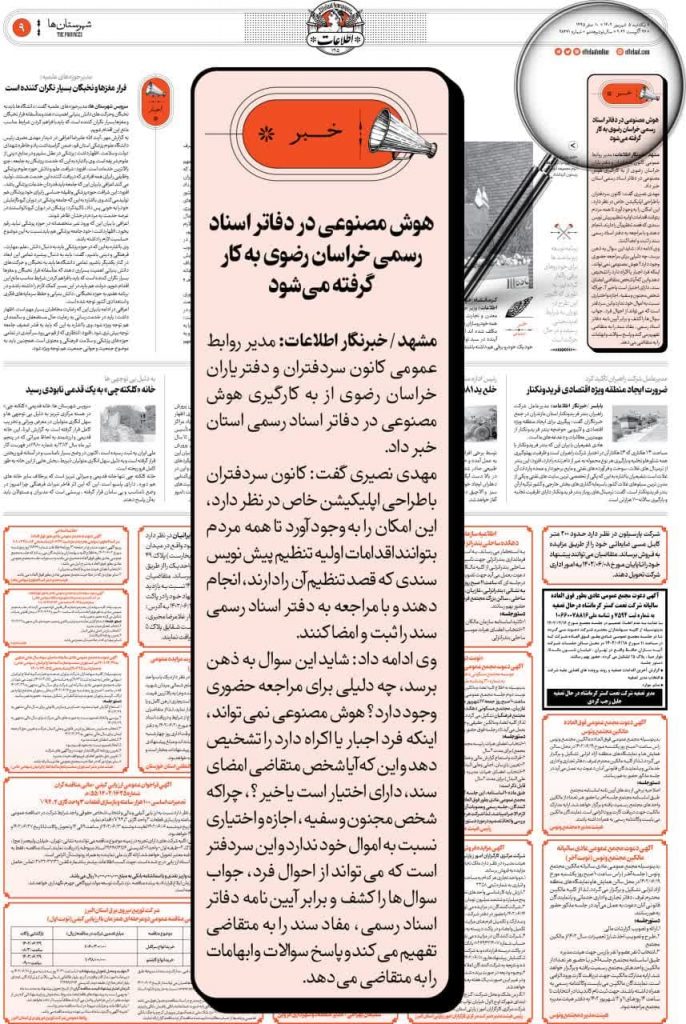 بازتاب نشست خبری کانون سردفتران و دفتریاران خراسان رضوی در روزنامه اطلاعات اخبار سایتکمیته روابط عمومی ، رسانه و تشریفات بوسیله مدیر سایت به روز رسانی شده در شهریور ۵, ۱۴۰۲ 0 ❇️ بازتاب نشست خبری کانون سردفتران و دفتریاران خراسان رضوی در روزنامه اطلاعات مورخ ۵ شهریور ۱۴۰۲ ❇️ ⚜️روابط عمومی کانون سردفتران و دفتریاران خراسان رضوی⚜️ 🌐 سایت 📱 ایتا 📱 سروش 📱 تلگرام 📱 اینستاگرام
