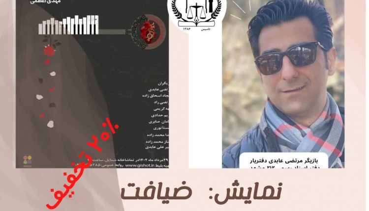 کمیته فرهنگی رفاهی کانون سردفتران و دفتریاران خراسان رضوی در نظر دارد، امکان حضور و لذت از هنر نمایی آقای مرتضی عابدی دفتر یار دفتر اسناد رسمی ۲۱۲ مشهد بر صحنه تئاتر (نمایش ضیافت🎭) را بصورت دسته جمعی در روز چهارشنبه ساعت ۱۶:۳۰ فراهم آورد.