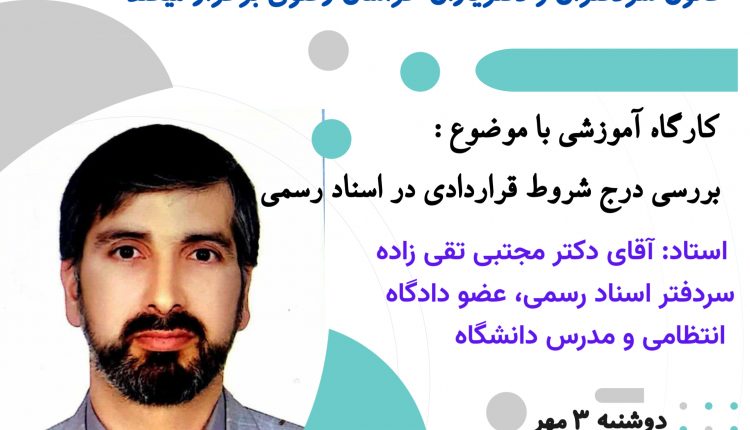 ✳️ به اطلاع همکاران گرامی می رساند در راستای آشنایی بیشتر با نحوه درج شروط قراردادی در اسناد رسمی، کانون سردفتران و دفتریاران خراسان رضوی در نظر دارد کارگاه آموزشی