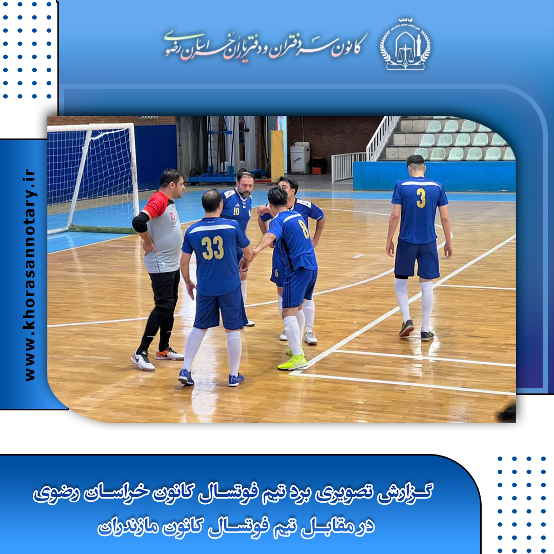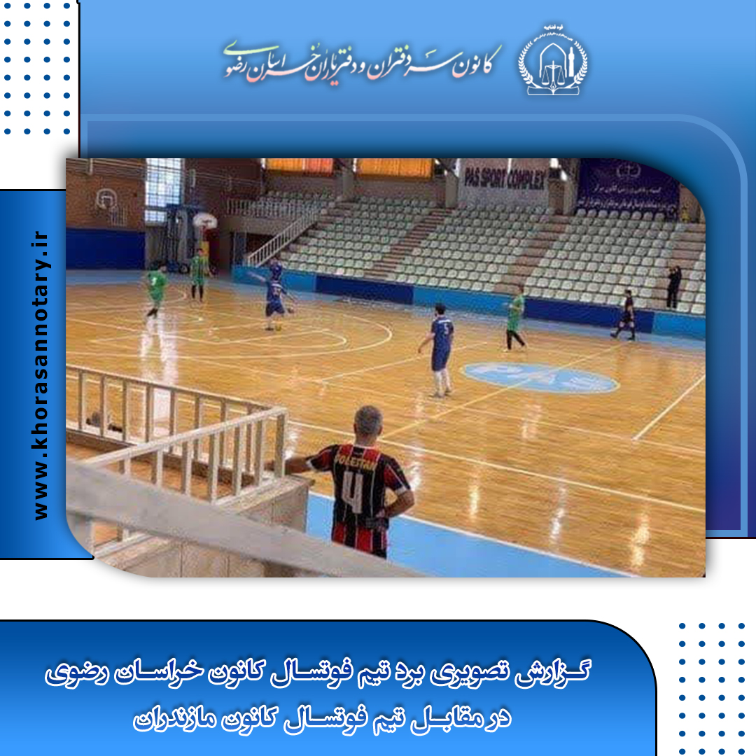 به گزارش مهدی عابدی کاپیتان تیم فوتسال کانون سردفتران و دفتریاران خراسان رضوی در نخستین دیدار خود از سری مسابقات لیگ کشور که صبح دیروز در سالن آکادمی پاس تهران برگزار گردید، موفق شدند در رقابت نزدیک و سخت مقابل تیم مازندران (قهرمان دوره قبل) به پیروزی یک بر صفر دست پیدا کنند، متاسفانه در این بازی مرتضی عابدی دچار آسیب دیدگی از ناحیه سر و به بیمارستان منتقل شد. (حال این همکار مساعد بوده و جای هیچ نگرانی نیست)