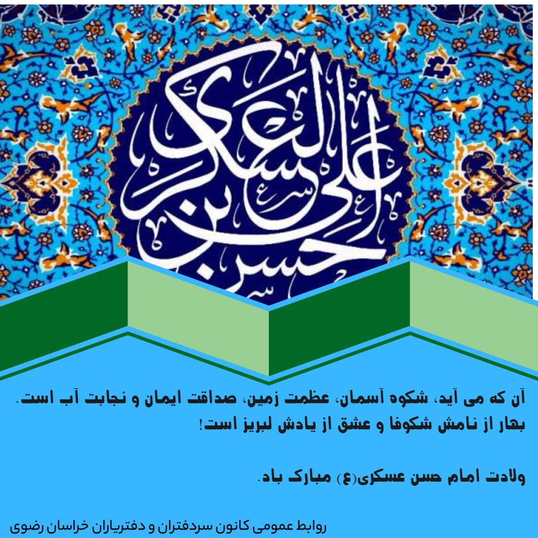 ولادت امام حسن عسکری(ع) مبارک باد اخبار سایتکمیته روابط عمومی ، رسانه و تشریفات بوسیله مدیر سایت به روز رسانی شده در آبان ۱, ۱۴۰۲ 0 آن که می آید، شکوه آسمان، عظمت زمین، صداقت ایمان و نجابت آب است. بهار از نامش شکوفا و عشق از یادش لبریز است! ولادت امام حسن عسکری(ع) مبارک باد. ⚜️روابط عمومی کانون سردفتران و دفتریاران خراسان رضوی⚜️ 🌐 سایت 📱 ایتا 📱 سروش 📱 تلگرام 📱 اینستاگرام