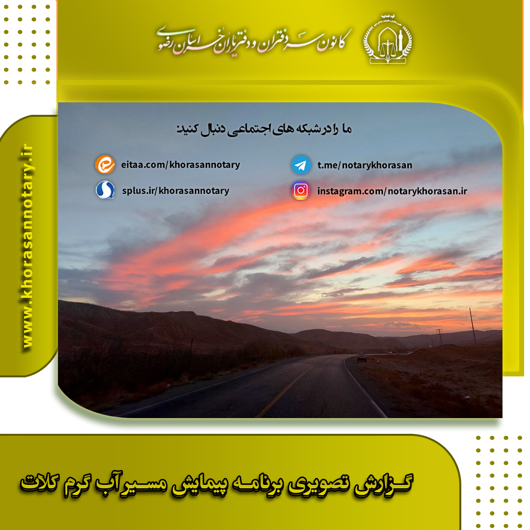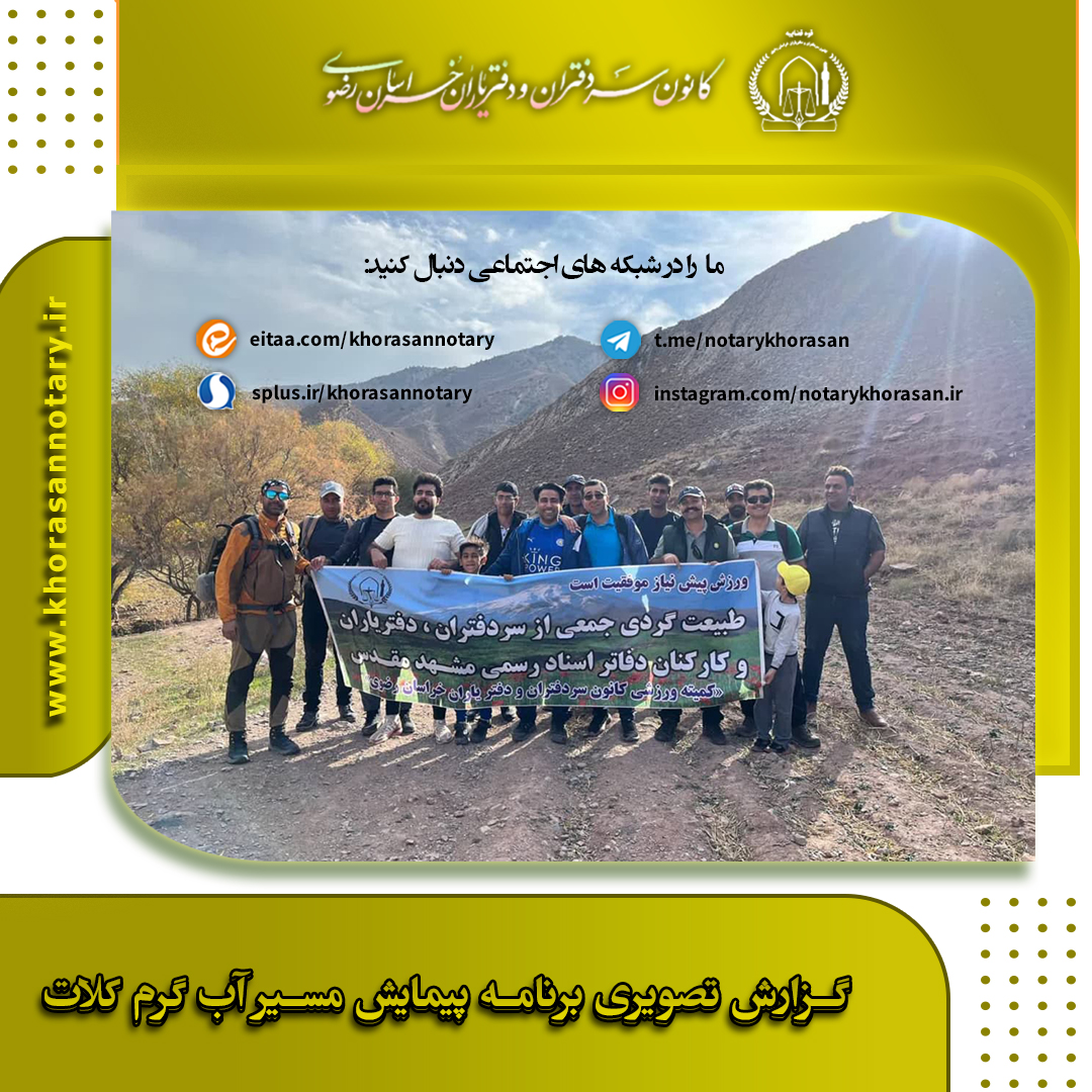 گزارش تصویری برنامه پیمایش مسیر آب گرم کلات اخبار سایتکمیته رفاهی،فرهنگی،ورزشیکمیته روابط عمومی ، رسانه و تشریفات بوسیله مدیر سایت به روز رسانی شده در آبان ۲۷, ۱۴۰۲ 0 ⚜️روابط عمومی کانون سردفتران و دفتریاران خراسان رضوی⚜️ 🌐 سایت 📱 ایتا 📱 سروش 📱 تلگرام 📱 اینستاگرام