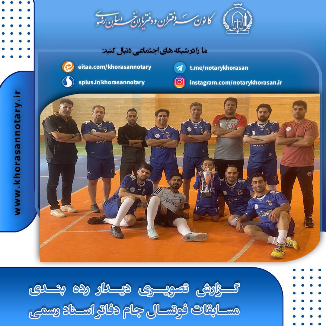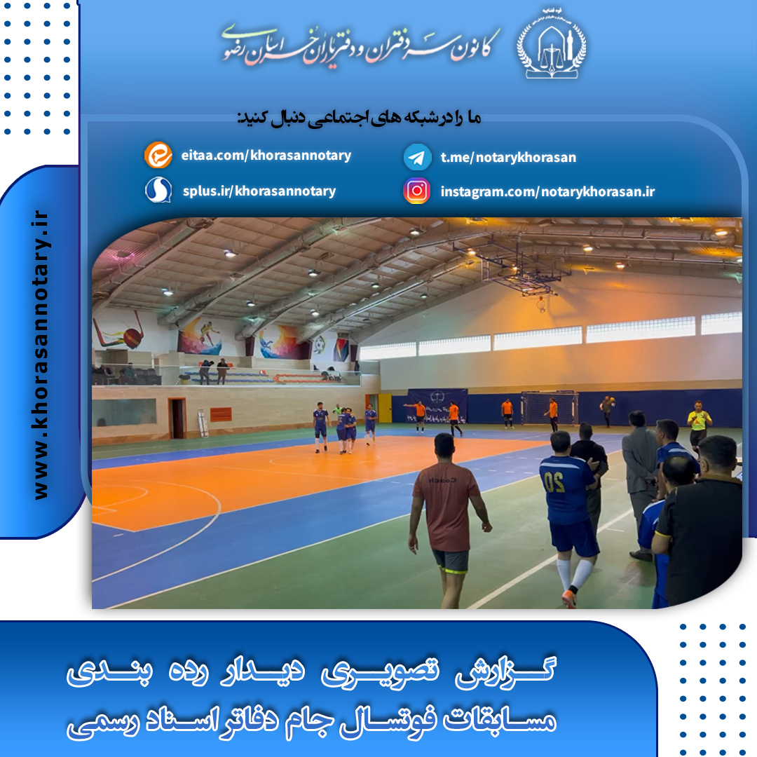 گزارش تصویری دیدار رده بندی مسابقات فوتسال جام دفاتر اسناد رسمی اخبار سایتکمیته روابط عمومی ، رسانه و تشریفات بوسیله مدیر سایت به روز رسانی شده در دی ۶, ۱۴۰۲ 0 ⚜️روابط عمومی کانون سردفتران و دفتریاران خراسان رضوی⚜️ 🌐 سایت 📱 ایتا 📱 سروش 📱 تلگرام 📱 اینستاگرام