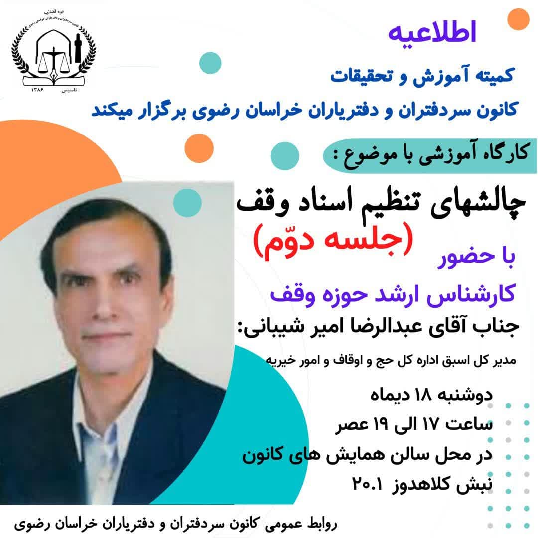 ❇️ کمیته آموزش و تحقیقات کانون سردفتران و دفتریاران خراسان رضوی برگزار می کند: کارگاه آموزشی ((حضوری)) شماره ۱۰ ❇️