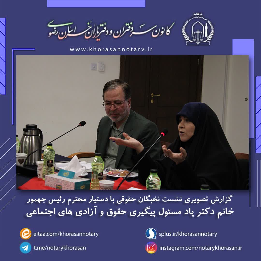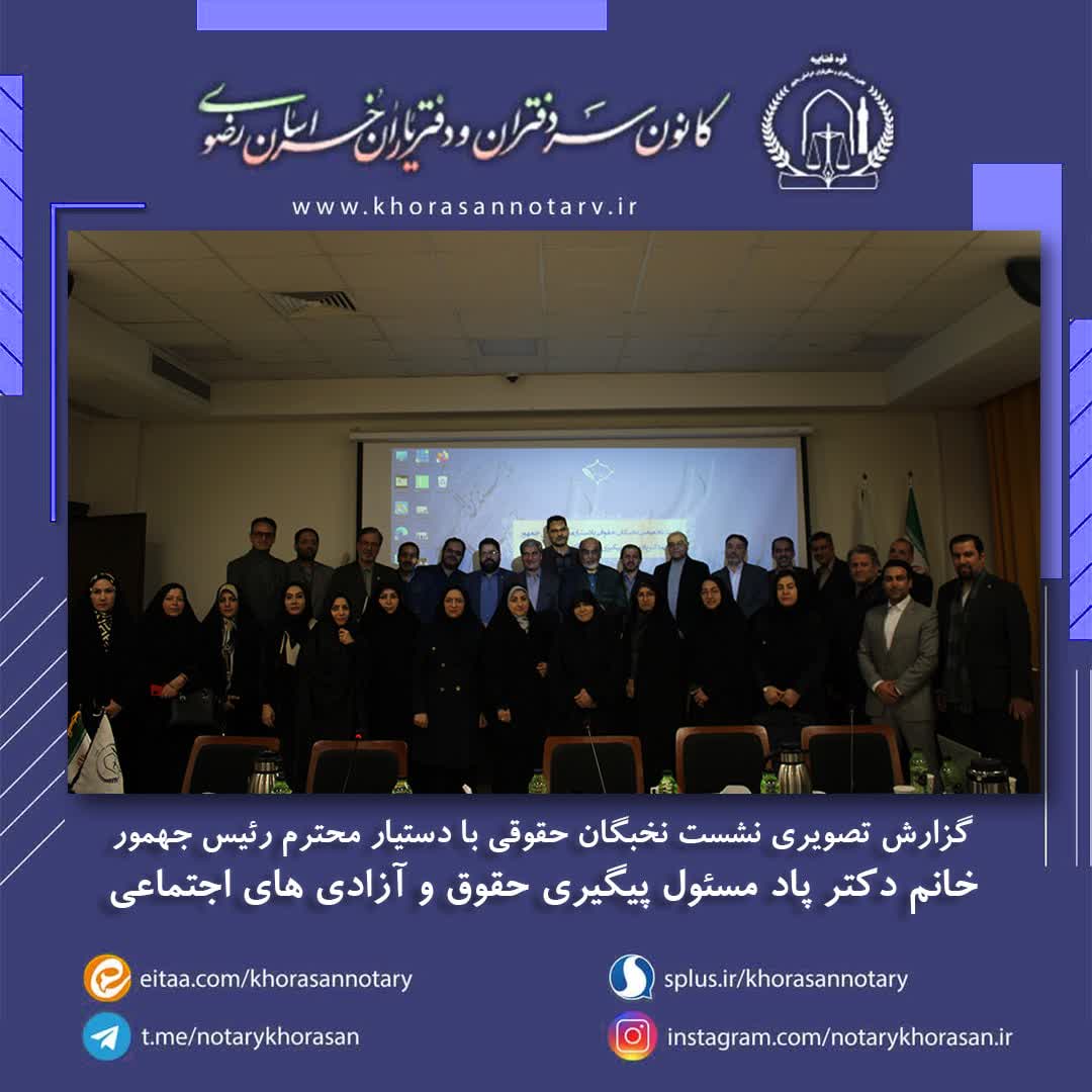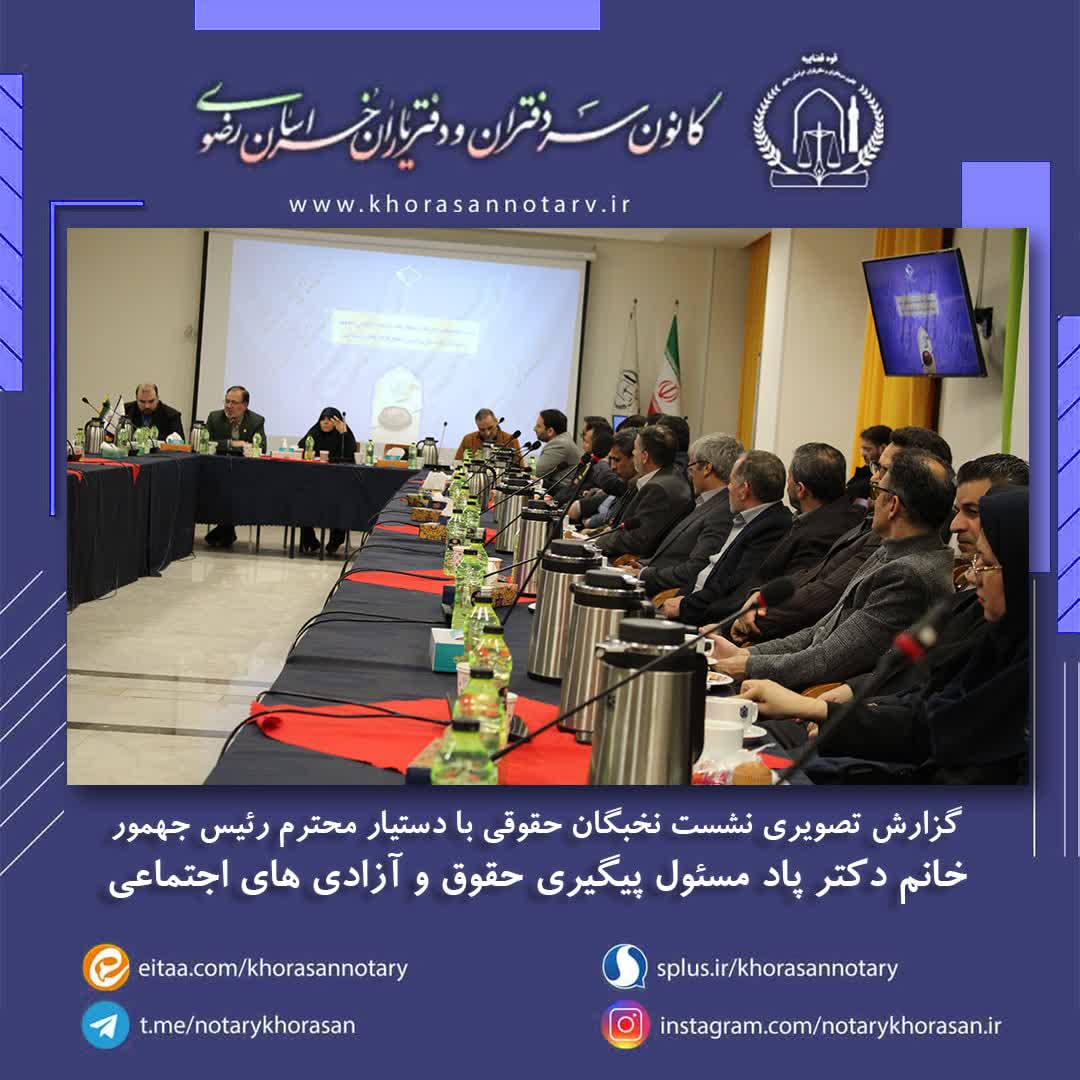 گزارش تصویری نشست تخصصی نخبگان حقوقی با دستیار محترم رئیس جمهور اخبار سایتکمیته روابط عمومی ، رسانه و تشریفات بوسیله مدیر سایت به روز رسانی شده در اسفند ۴, ۱۴۰۲ 0 ❇️گزارش تصویری نشست تخصصی نخبگان حقوقی با دستیار محترم رئیس جمهور خانم دکتر پاد، مسئول پیگیری حقوق و آزادی های اجتماعی❇️ ⚜️روابط عمومی کانون سردفتران و دفتریاران خراسان رضوی⚜️ 🌐 سایت 📱 ایتا 📱 سروش 📱 تلگرام 📱 اینستاگرام