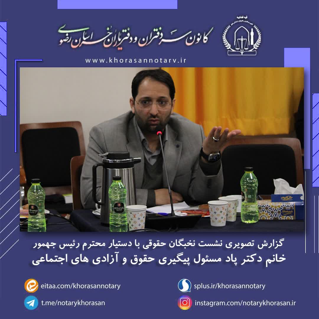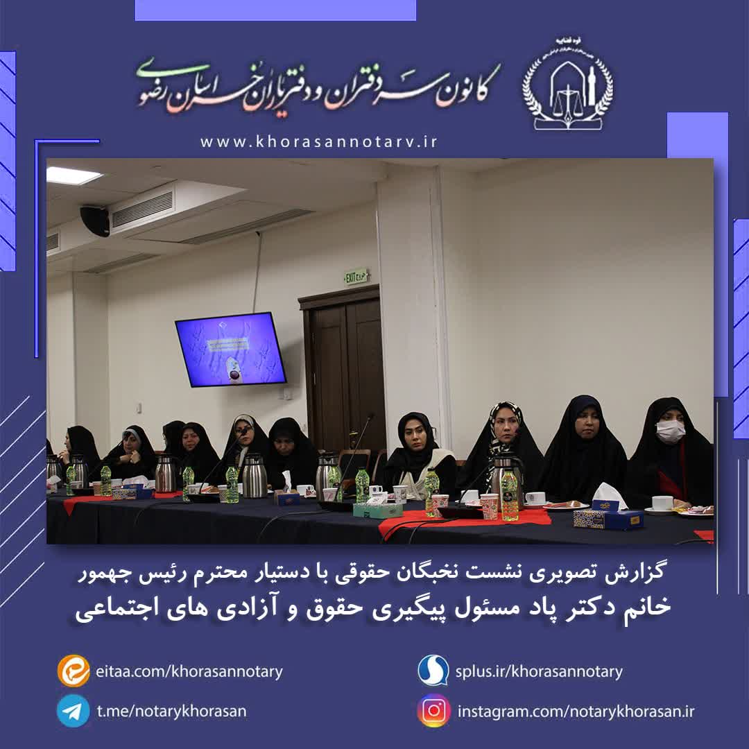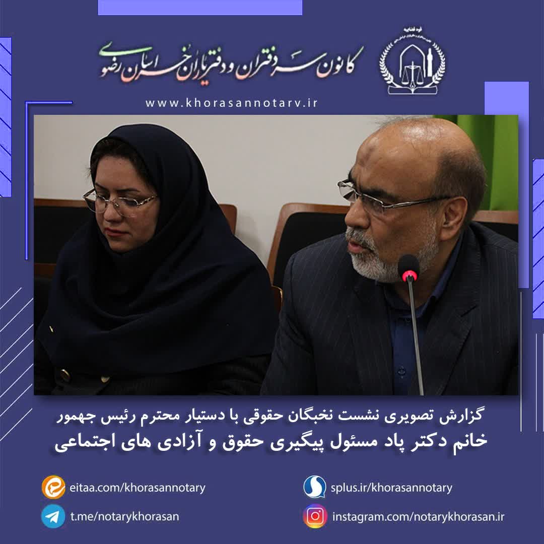 گزارش تصویری نشست تخصصی نخبگان حقوقی با دستیار محترم رئیس جمهور اخبار سایتکمیته روابط عمومی ، رسانه و تشریفات بوسیله مدیر سایت به روز رسانی شده در اسفند ۴, ۱۴۰۲ 0 ❇️گزارش تصویری نشست تخصصی نخبگان حقوقی با دستیار محترم رئیس جمهور خانم دکتر پاد، مسئول پیگیری حقوق و آزادی های اجتماعی❇️ ⚜️روابط عمومی کانون سردفتران و دفتریاران خراسان رضوی⚜️ 🌐 سایت 📱 ایتا 📱 سروش 📱 تلگرام 📱 اینستاگرام