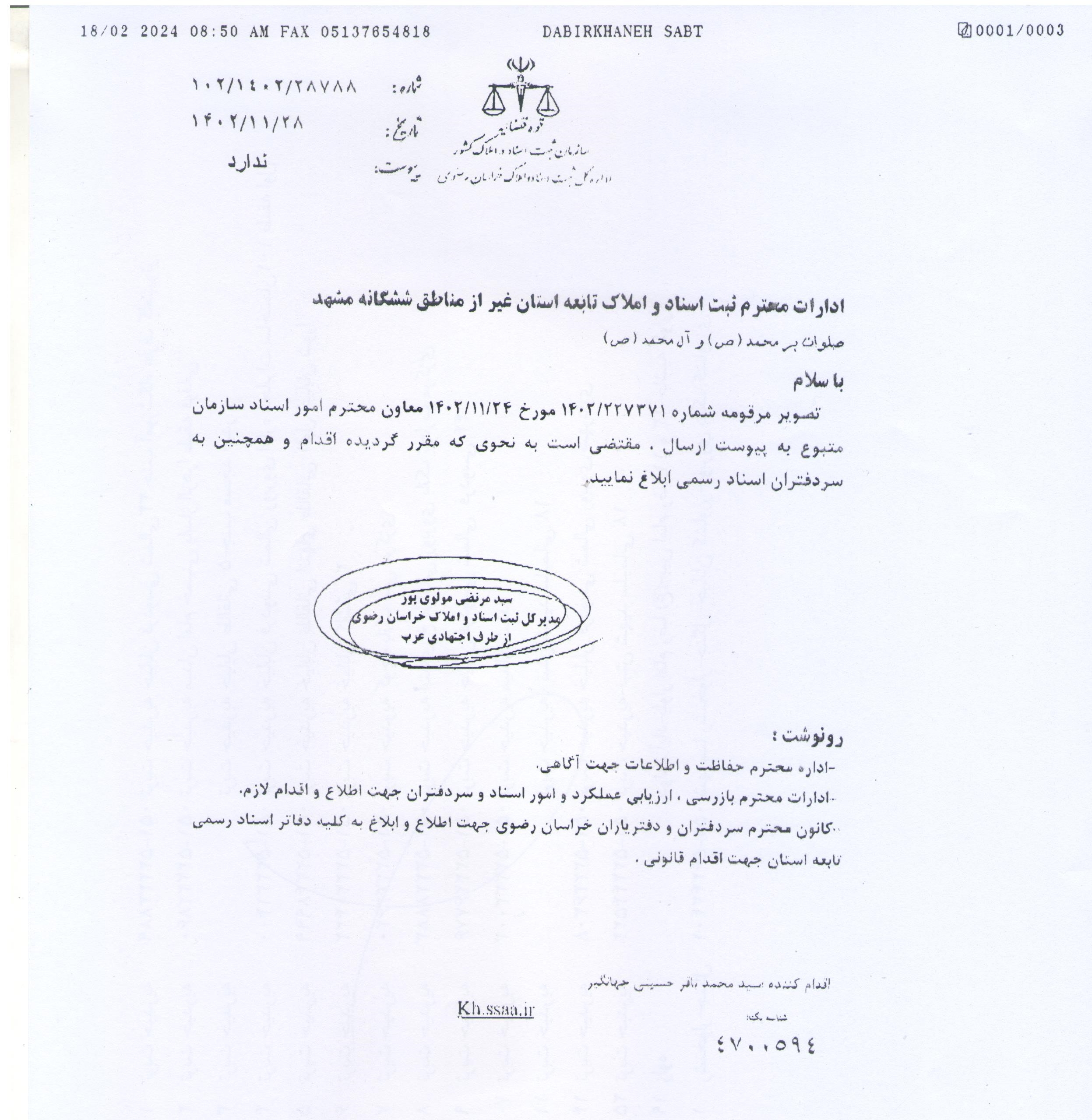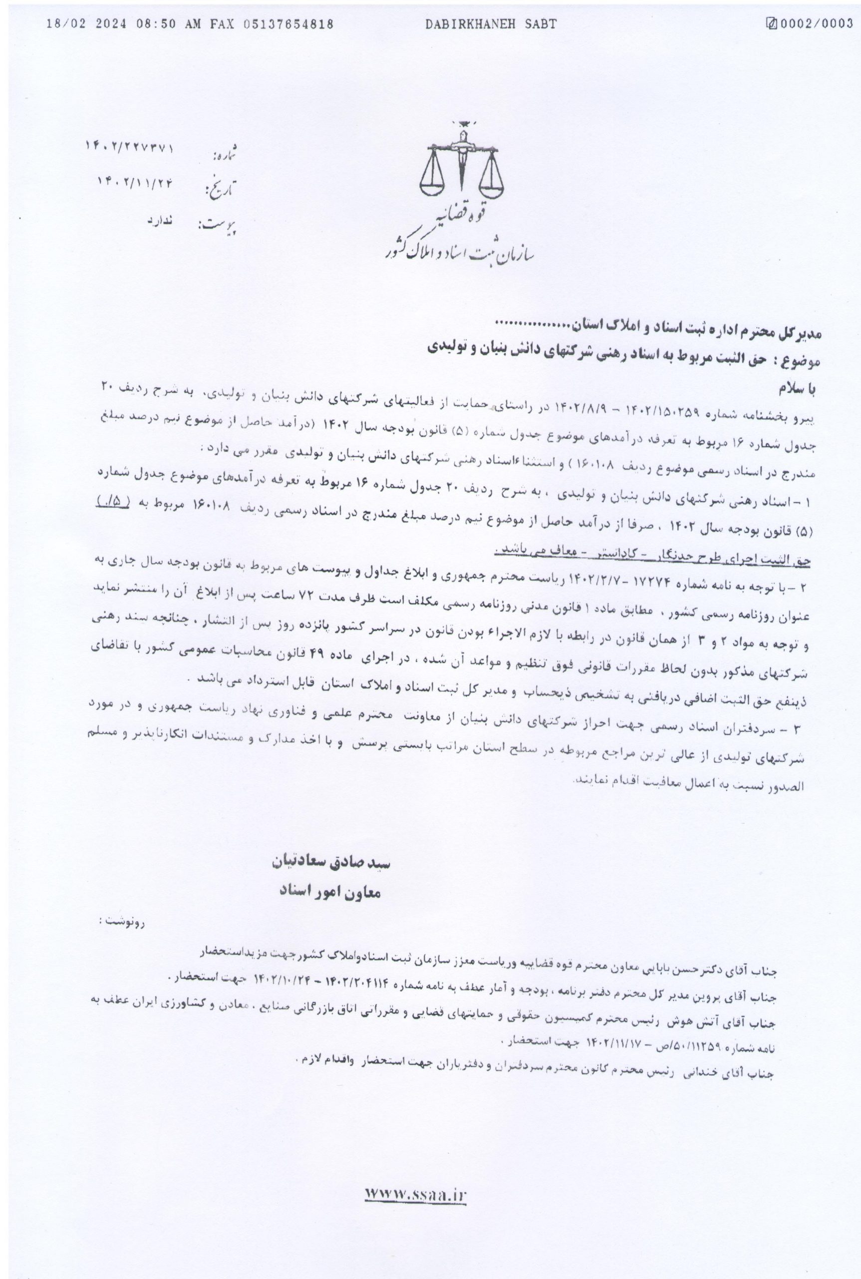 معافیت مبلغ نیم درصد مازاد شرکت های تولیدی و دانش بنیان اخبار سایتکمیته روابط عمومی ، رسانه و تشریفات بوسیله مدیر سایت به روز رسانی شده در اسفند ۸, ۱۴۰۲ 0 نامه شماره ۱۰۲/۱۴۰۲/۲۸۷۸۸ مورخ ۱۴۰۲/۱۱/۲۸ مدیر کل محترم ثبت استان در خصوص معافیت مبلغ نیم درصد مازاد شرکت های تولیدی و دانش بنیان ⚜️روابط عمومی کانون سردفتران و دفتریاران خراسان رضوی⚜️ 🌐 سایت 📱 ایتا 📱 سروش 📱 تلگرام 📱 اینستاگرام