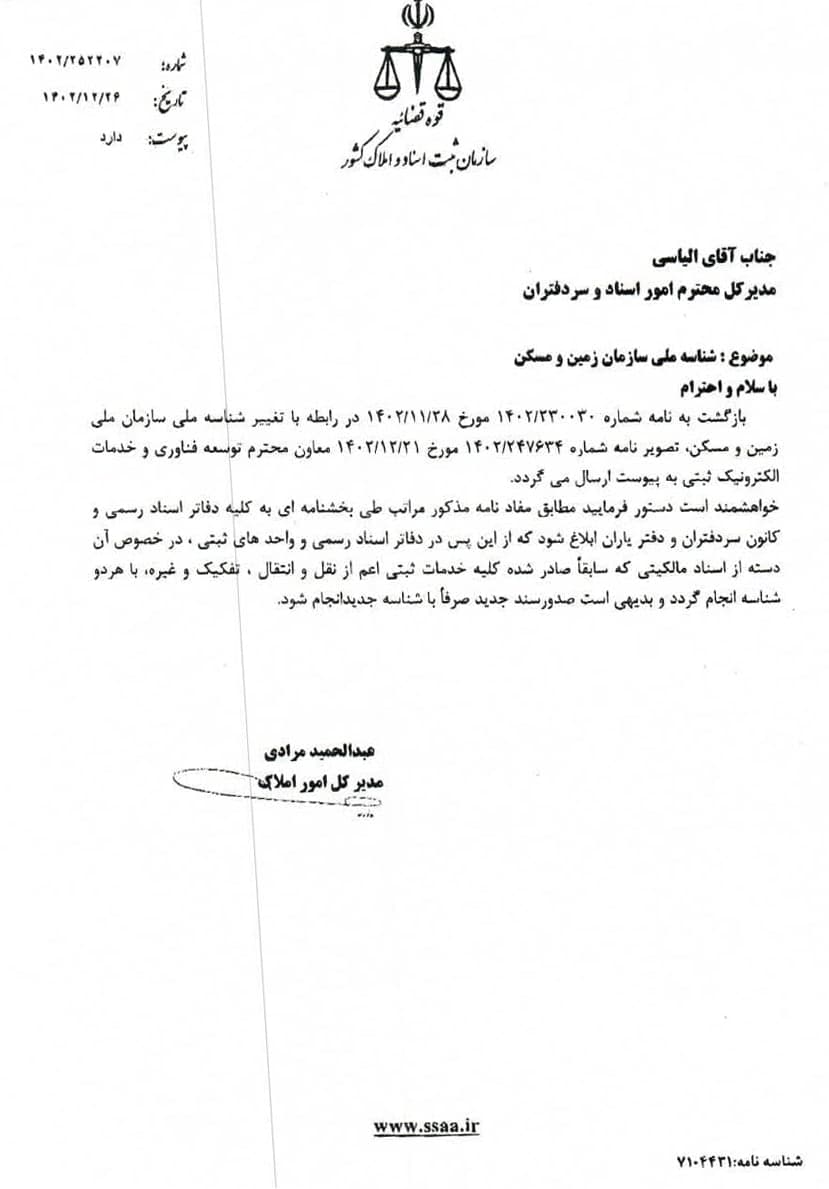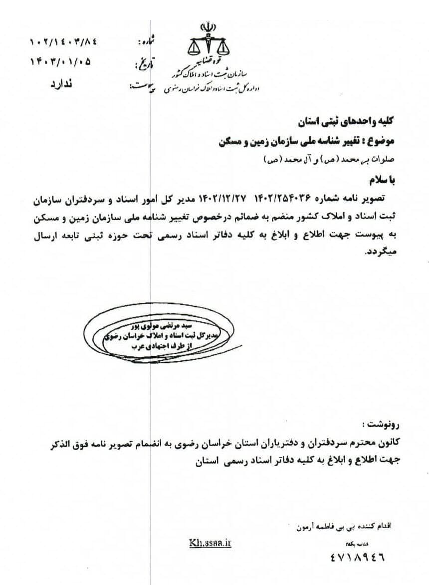 تغییر شناسه ملی سازمان ملی زمین و مسکن اخبار سایتکمیته روابط عمومی ، رسانه و تشریفات بوسیله مدیر سایت به روز رسانی شده در فروردین ۶, ۱۴۰۳ 0 تصویر نامه شماره ۱۰۲/۱۴۰۳/۸۴ مورخ ۱۴۰۳/۰۱/۰۵ مدیر کل محترم ثبت استان به همراه ضمائم آن در خصوص تغییر شناسه ملی سازمان ملی زمین و مسکن جهت استحضار همکاران ⚜️روابط عمومی کانون سردفتران و دفتریاران خراسان رضوی⚜️ 🌐 سایت 📱 ایتا 📱 سروش 📱 تلگرام 📱 اینستاگرام