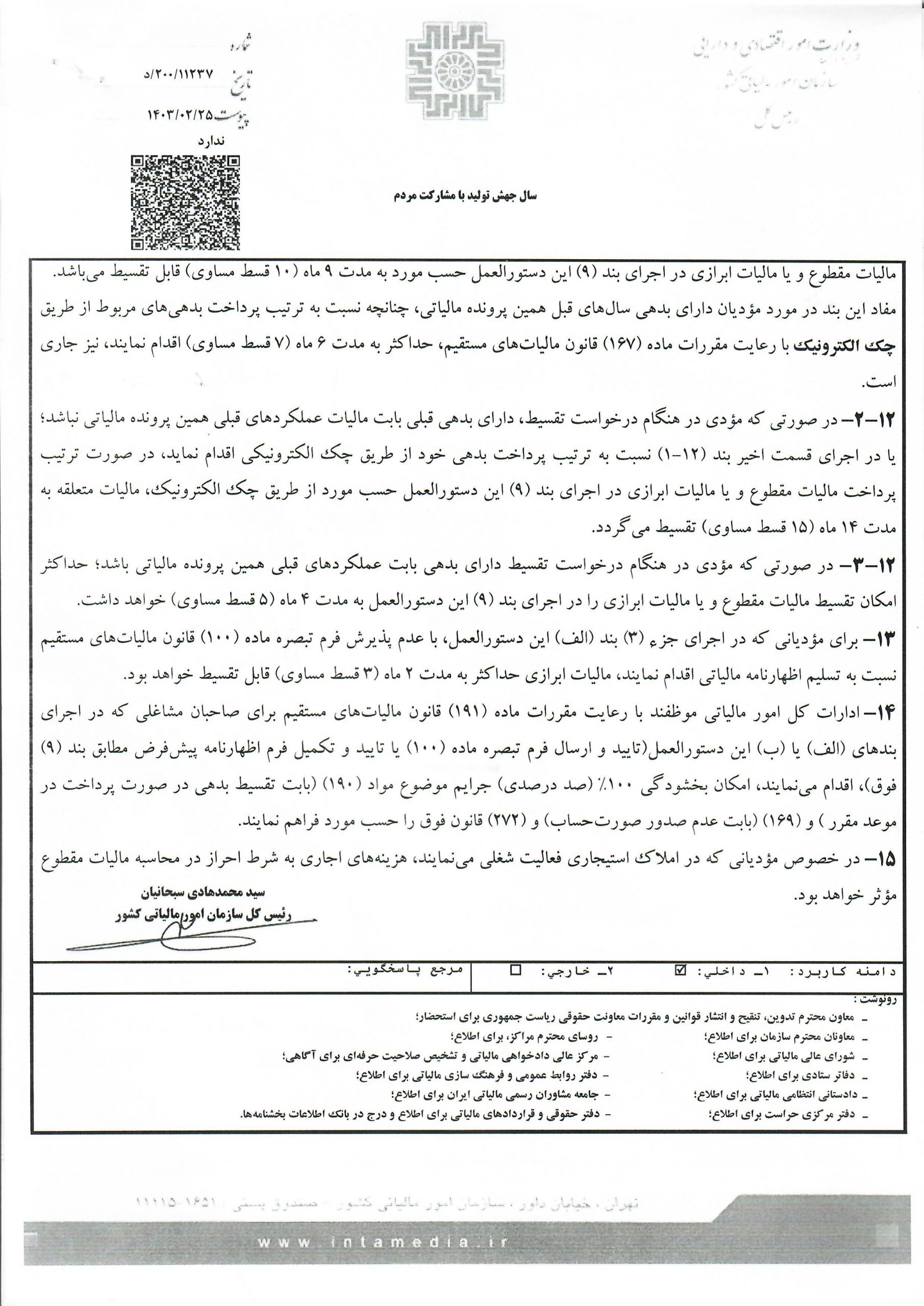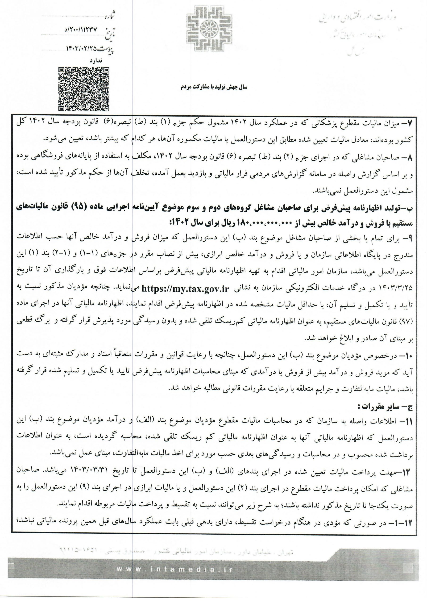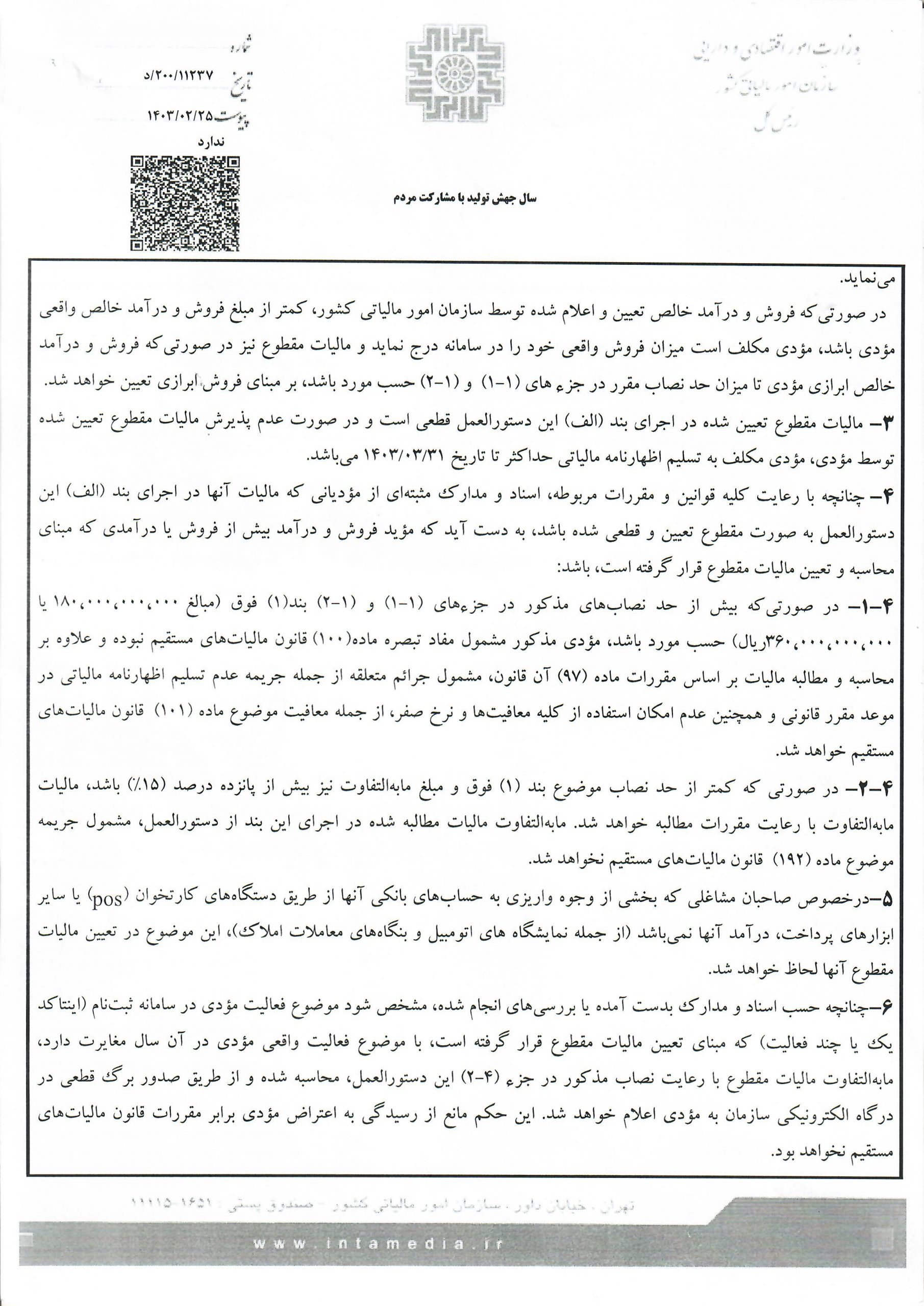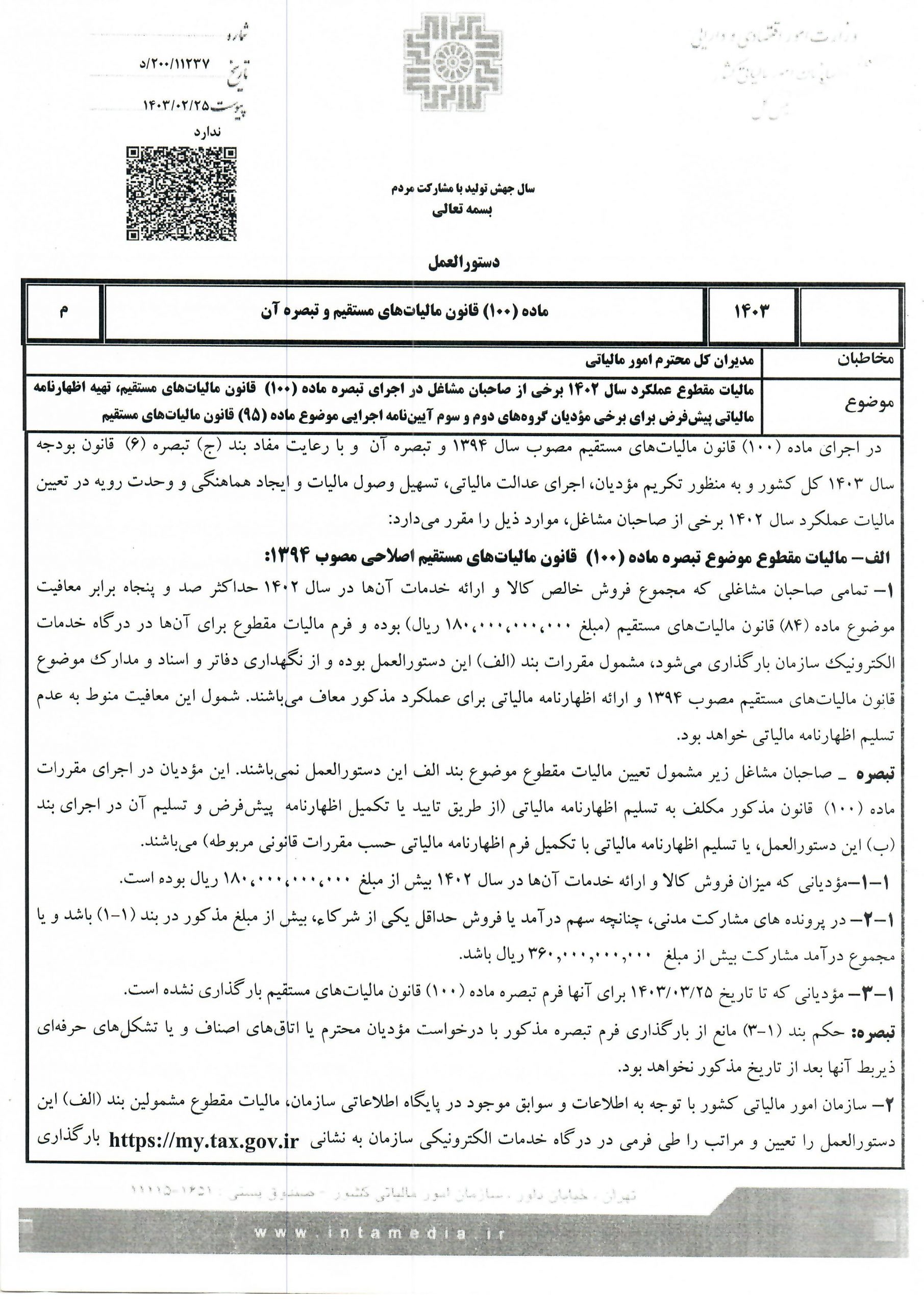 دستور العمل ماده ۱۰۰ قانون مالیات های مستقیم و تبصره آن اخبار سایتکمیته روابط عمومی ، رسانه و تشریفاتواحد آموزش و تحقیقات بوسیله مدیر سایت در مرداد ۲, ۱۴۰۳ 0 دستور العمل ماده ۱۰۰ قانون مالیات های مستقیم و تبصره آن ⚜️روابط عمومی کانون سردفتران و دفتریاران خراسان رضوی⚜️ 🌐 سایت 📱 ایتا 📱 سروش 📱 تلگرام 📱 اینستاگرام