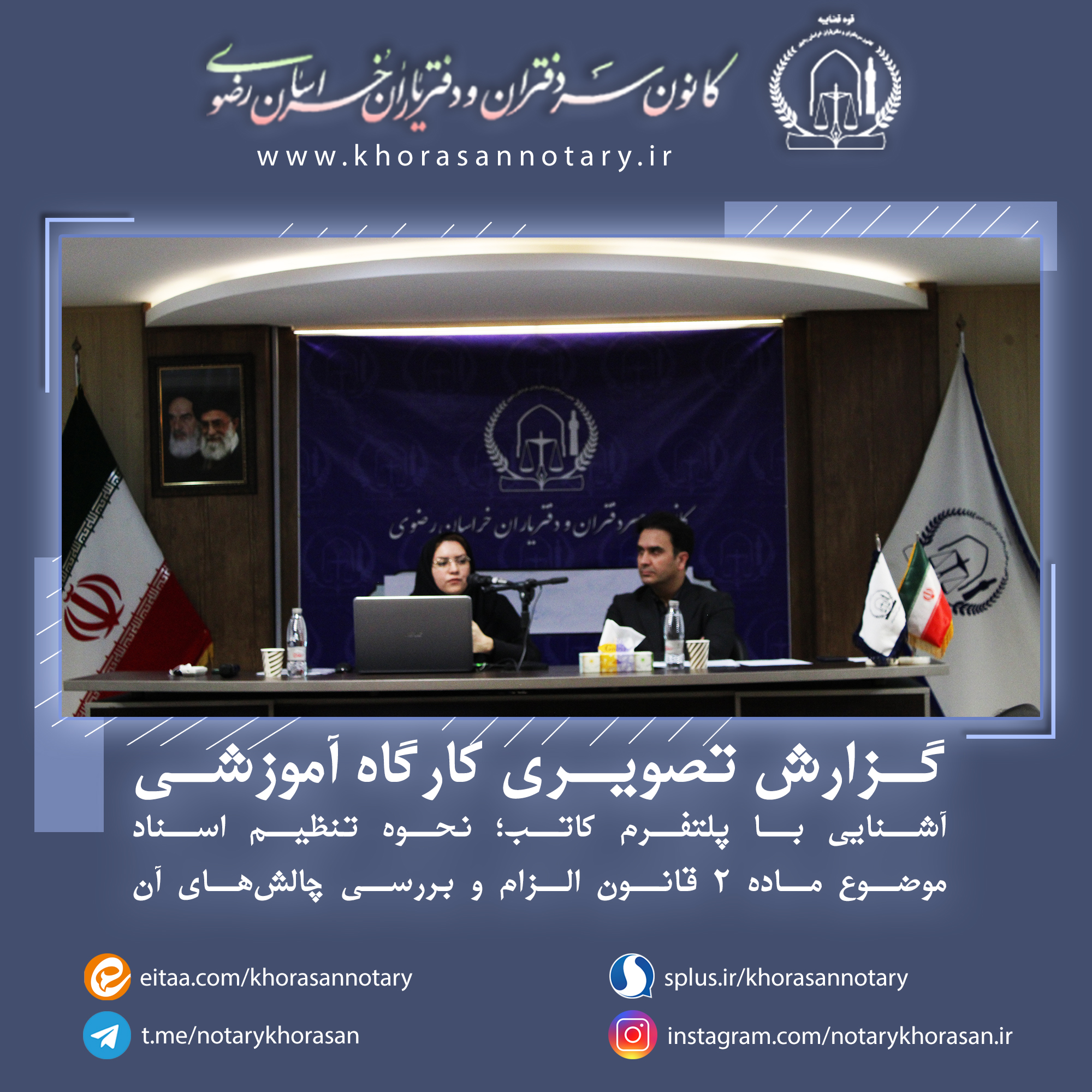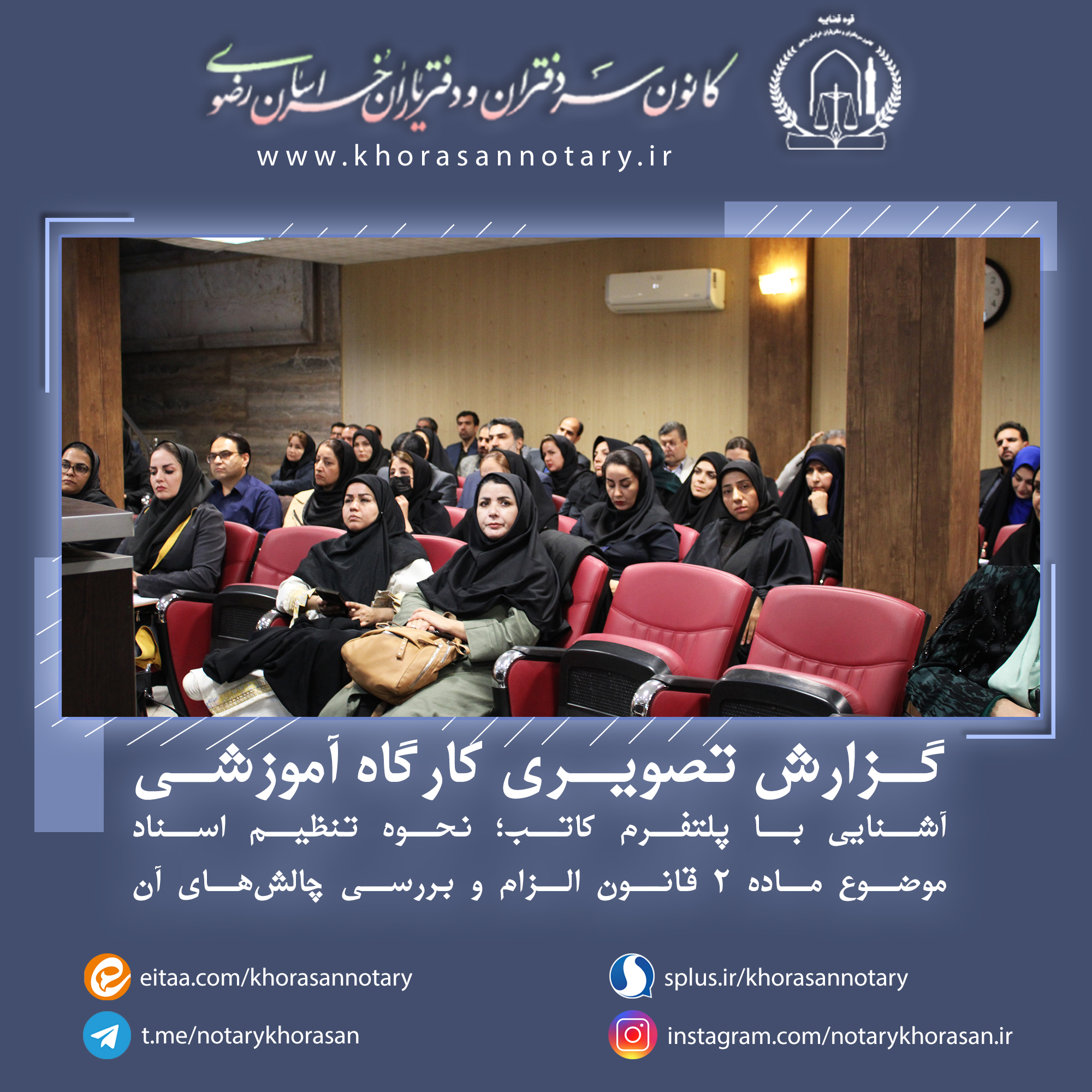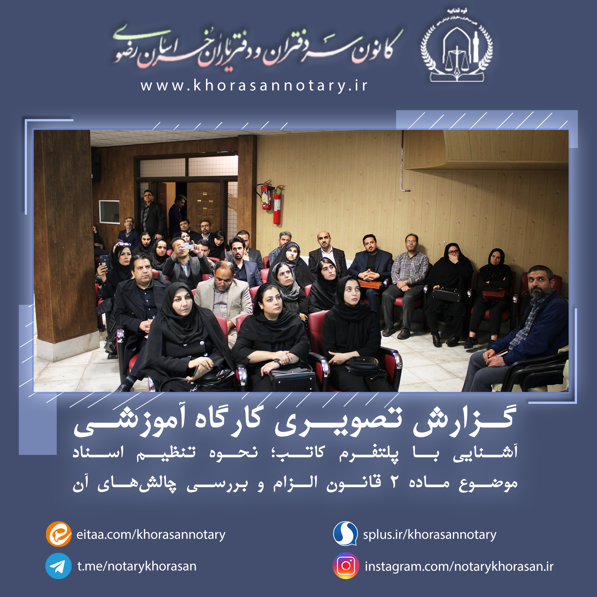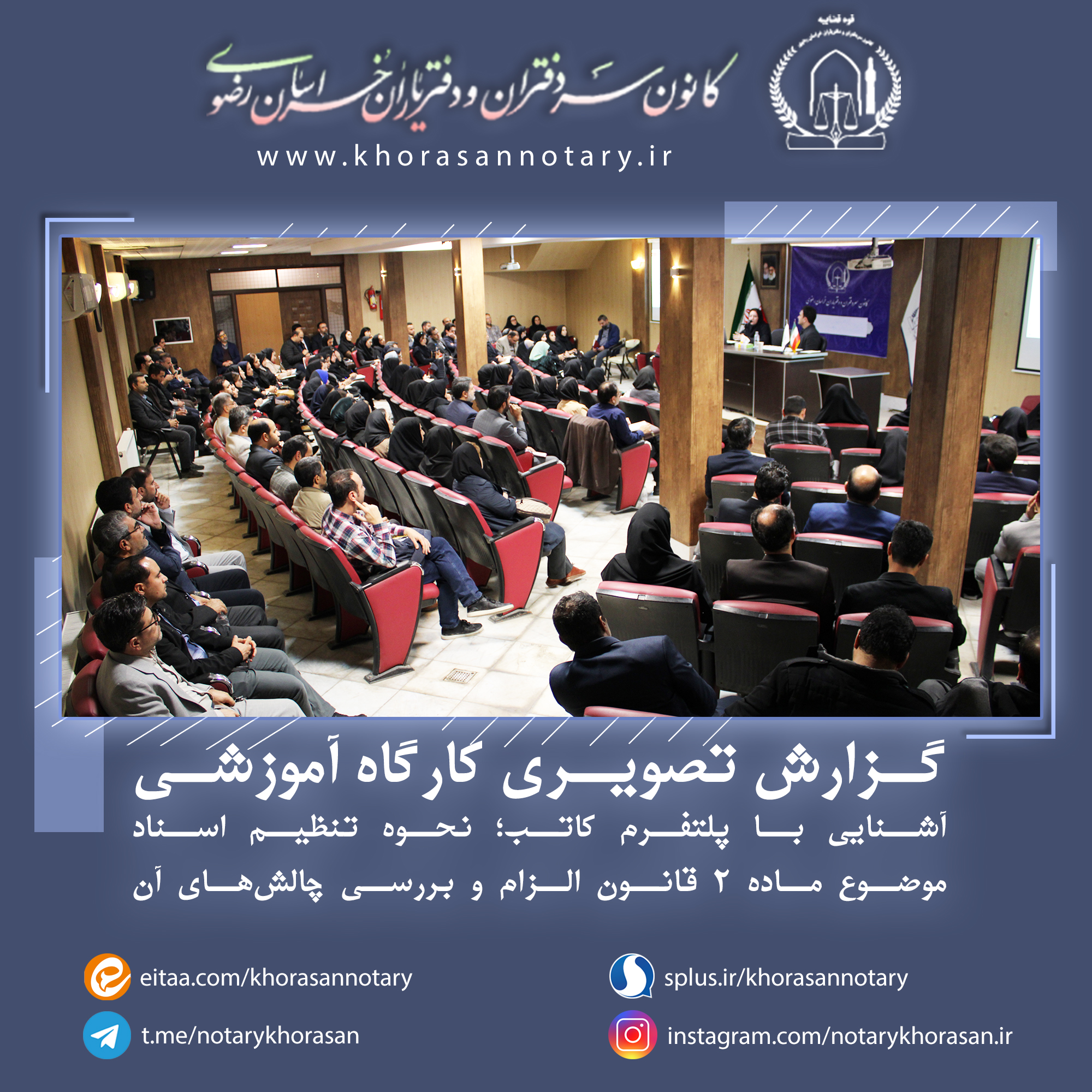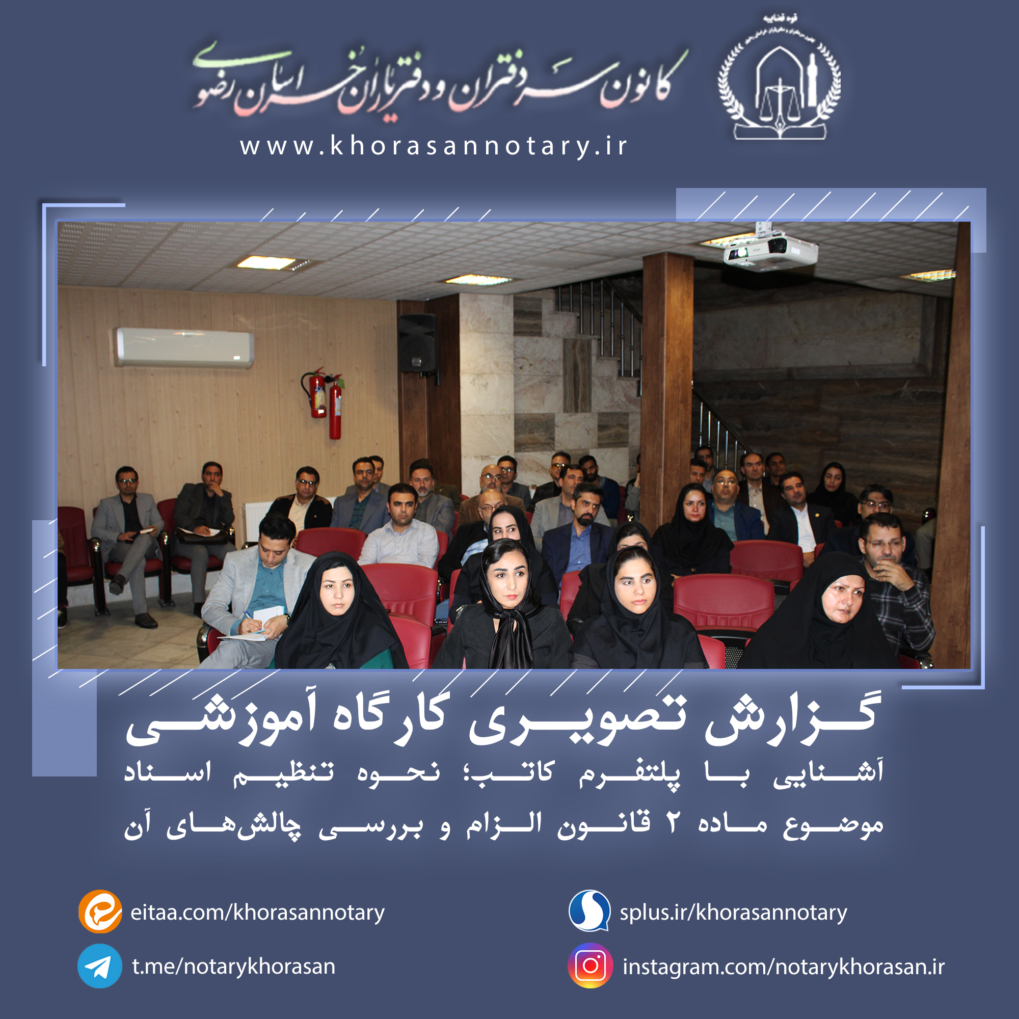 گزارش تصویری هجدهمین کارگاه آموزشی اخبار سایتکمیته روابط عمومی ، رسانه و تشریفاتواحد آموزش و تحقیقات بوسیله مدیر سایت در آبان ۱۹, ۱۴۰۳ 0 گزارش تصویری هجدهمین کارگاه آموزشی با موضوع آشنایی با پلتفرم کاتب؛ نحوه تنظیم اسناد موضوع ماده ۲ قانون الزام و بررسی چالشهای آن ⚜️روابط عمومی کانون سردفتران و دفتریاران خراسان رضوی⚜️ 🌐 سایت 📱 ایتا 📱 سروش 📱 تلگرام 📱 اینستاگرام
