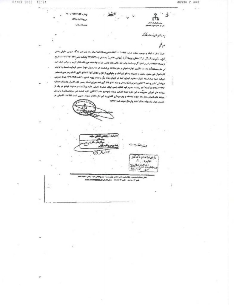نامه اداره پست در خصوص مراجعه نماینده پست جهت پیش ثبت نام کارت ملی هوشمند